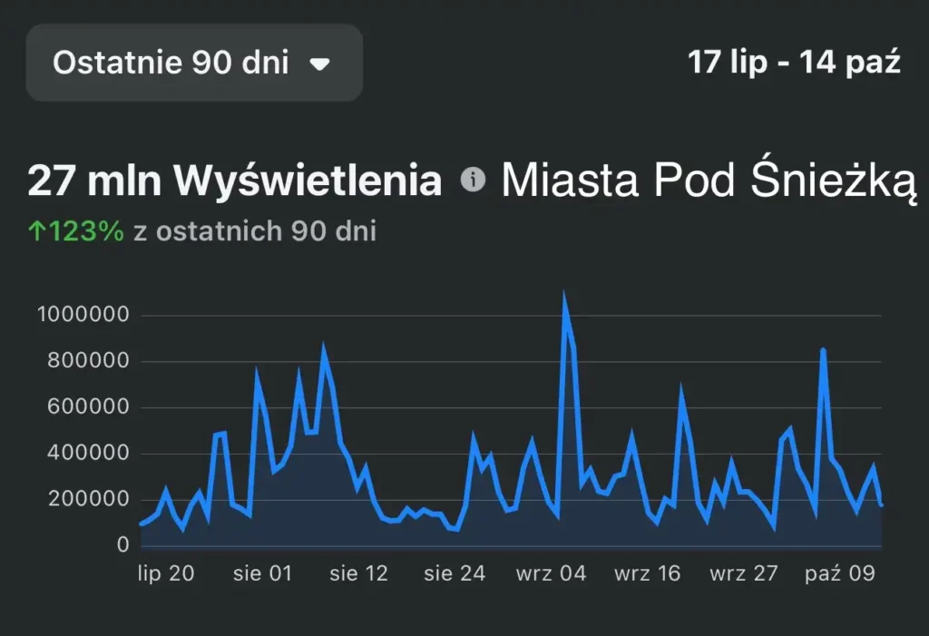 Według danych z Meta (Facebook + Instagram) nasze publikacje osiągnęły w ostatnich 90 dniach ponad 27 milionów wyświetleń, co oznacza wzrost aż o 123%.